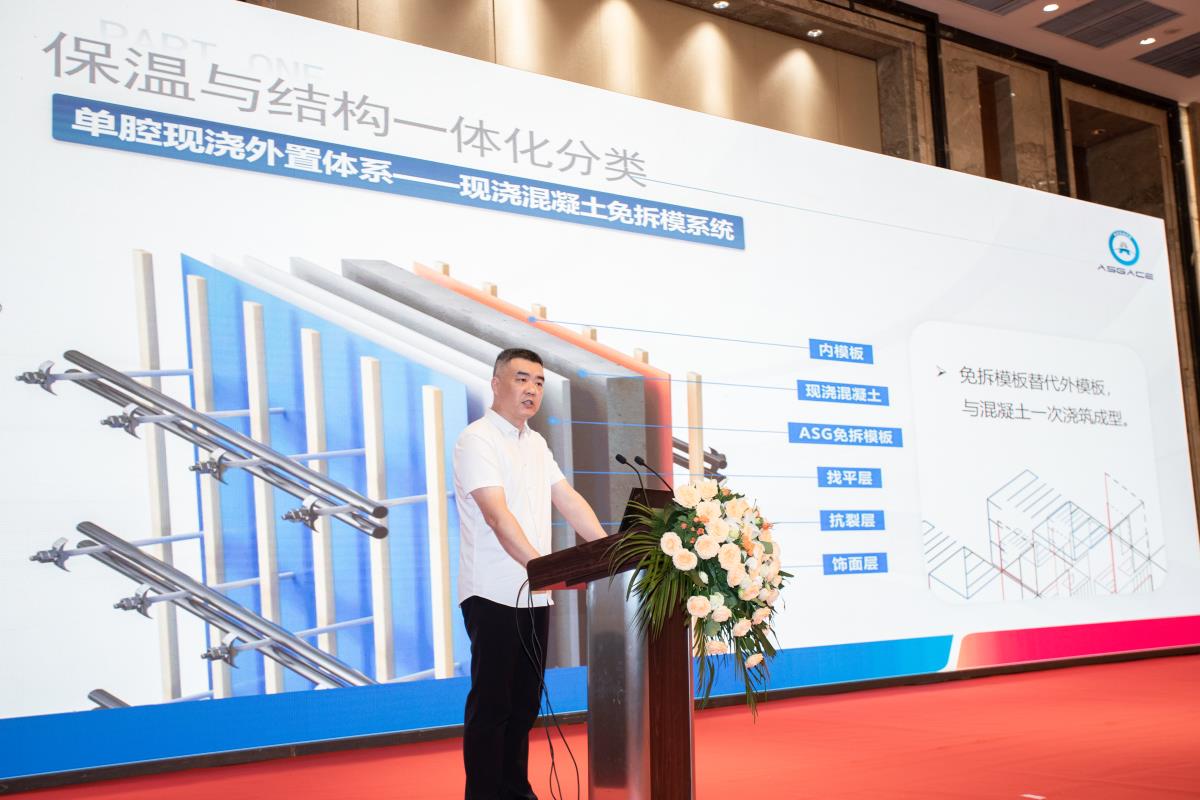 襄陽(yáng)銀達(dá)銀通節(jié)能建材有限公司技術(shù)總監(jiān)阮飛上臺(tái)分享ASG保溫結(jié)構(gòu)一體化免拆模系統(tǒng)技術(shù),包括ASG免拆模系統(tǒng)應(yīng)用情況、技術(shù)探究、ASG免拆模系統(tǒng)推廣匯報(bào)。ASG免拆模系統(tǒng)體系優(yōu)勢(shì):自保溫、一體化、同壽命,技術(shù)革新,提升外墻保溫工程質(zhì)量及安全,綜合性價(jià)比高。